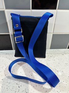 Curve Cross-Body – made from blue mock-croc retrieved from a weekend bag that the client didn’t use.