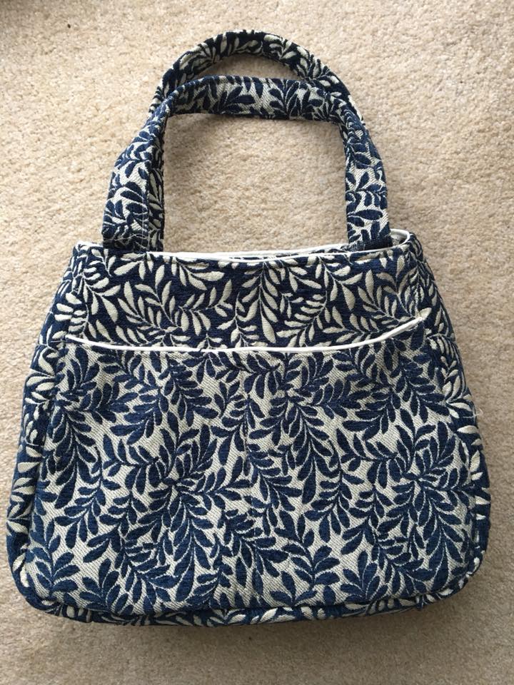 These stunning Atelier bags have slip pockets on the front and rear, and three slip pockets inside too. The top fastens with a zipper, and the handles can be used as shoulder straps if the top is folded over, or in the hand if you’re carrying bigger items. They are in either tweed or tapestry with faux leather accents. £65 each. SOLD