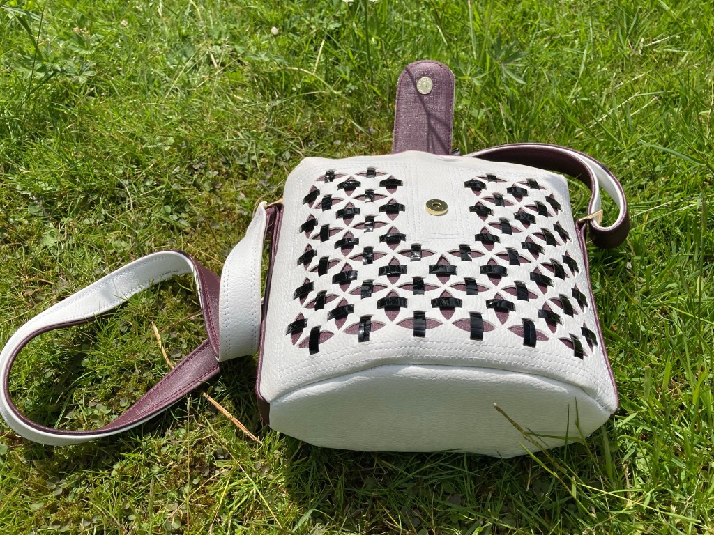 Both bags are made in faux leather with cotton linings, with a front feature panel that uses both reverse applique and weaving in the designs. On the back there is a feature triple-mounted surround to the external pocket zip. Inside there are more zipped and slip pockets, and the top fastens with a secure zipper. The straps are fully adjustable for cross-body or over the shoulder wear. £85 each, plus P&P.