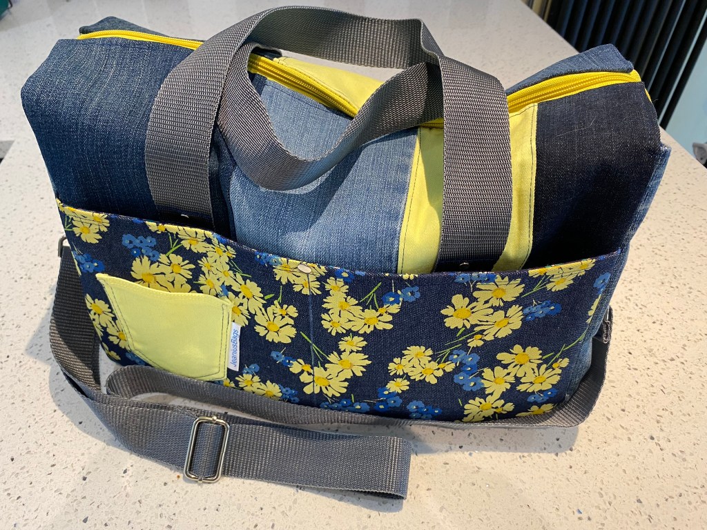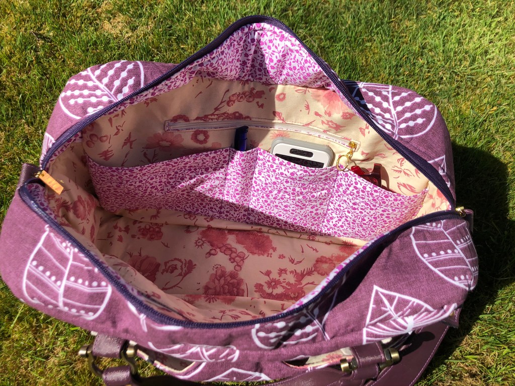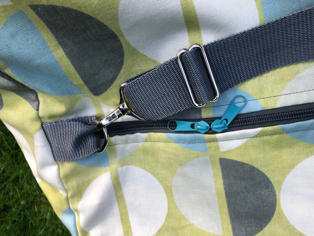 Planning a weekend away? The Emblem Duffle Bag (both SOLD) designed by Sew Sweetness) will carry all your essentials. Measuring 18” long x 10” tall x 8” deep (46cm long x 25.5cm tall x 20.5cm deep) it has a fully adjustable and removable shoulder strap, two handles, an exterior slip pocket and two roomy interior zipped pockets.