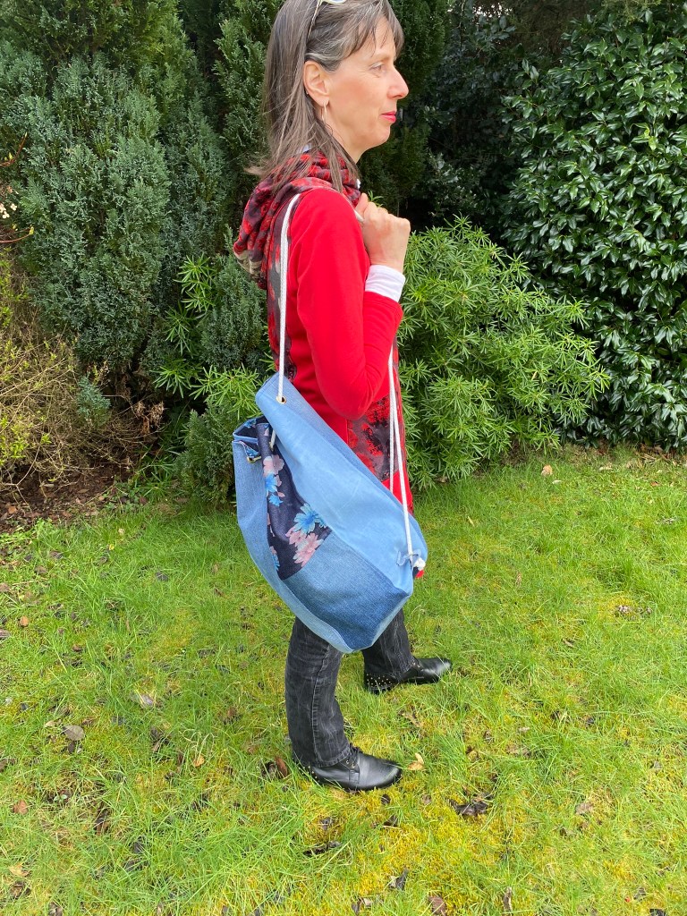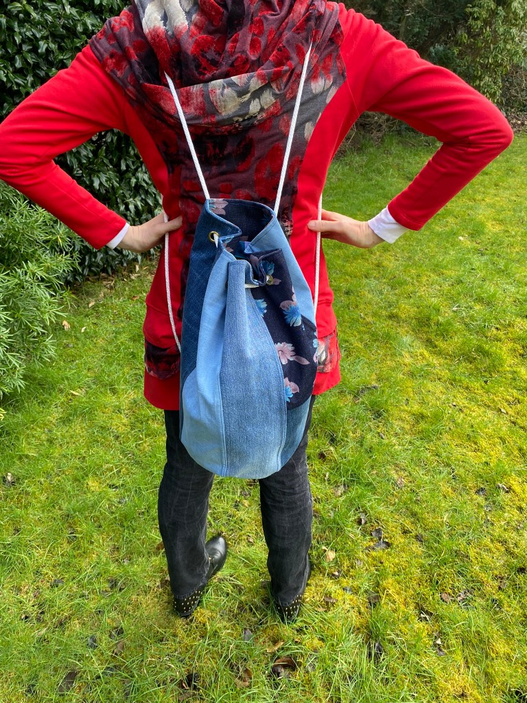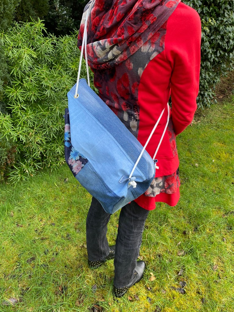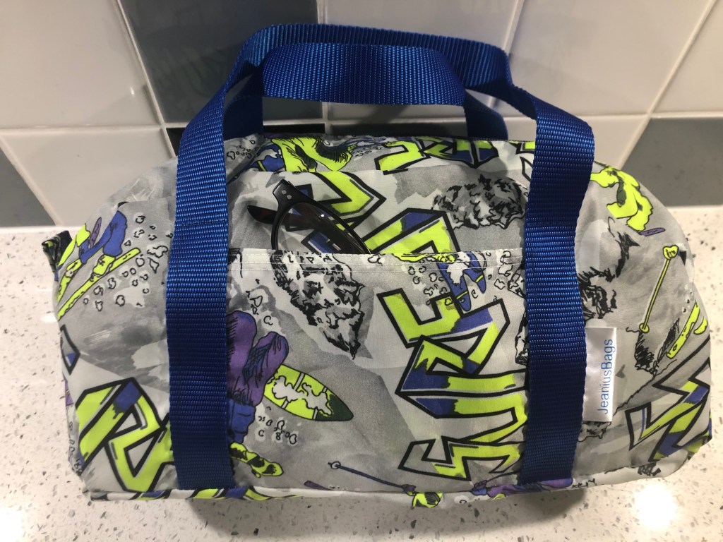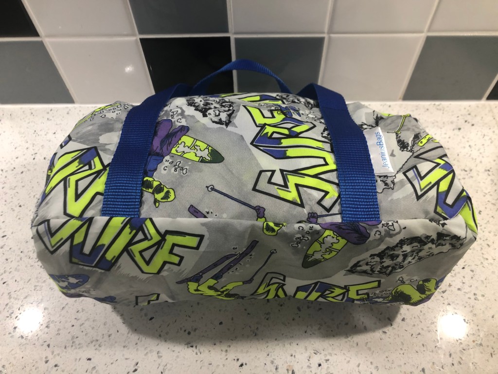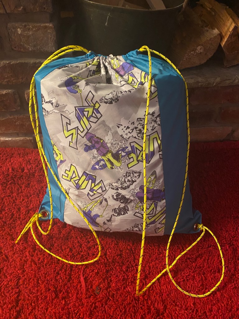 This spacious drawstring backpack was made specifically to meet the client’s need – tidy storage of her dryrobe in the boot of the car. This is made from ski-themed rip-stop water-resistant nylon. £10 plus P&P: