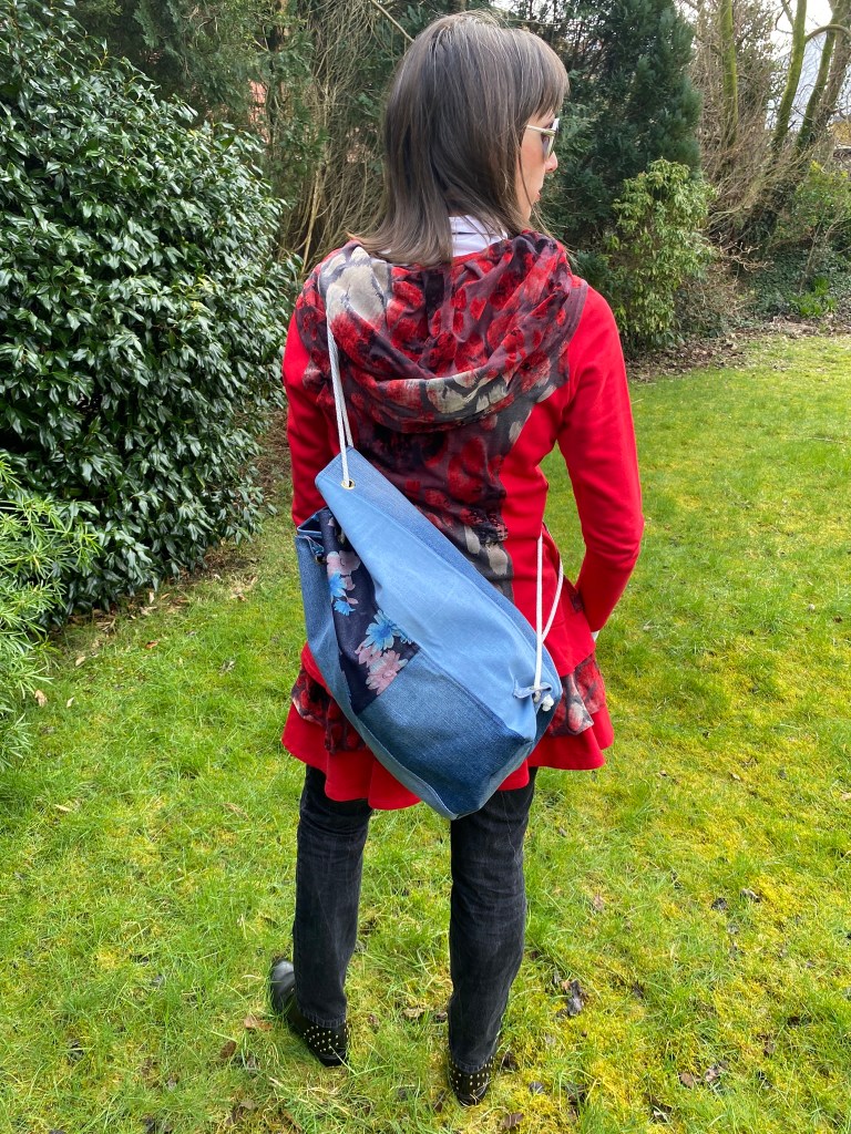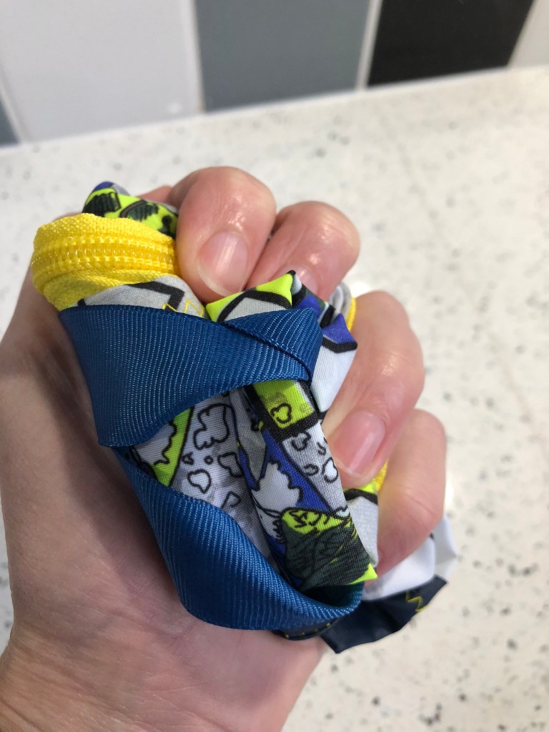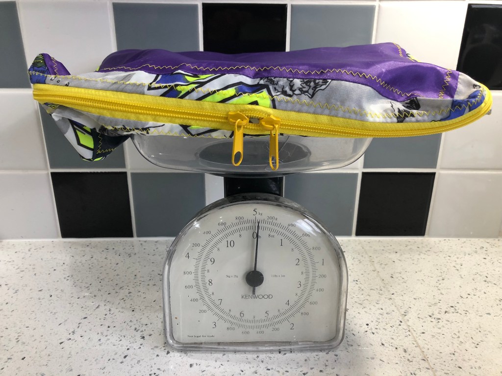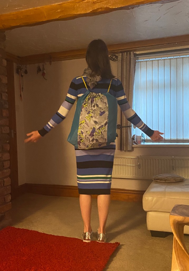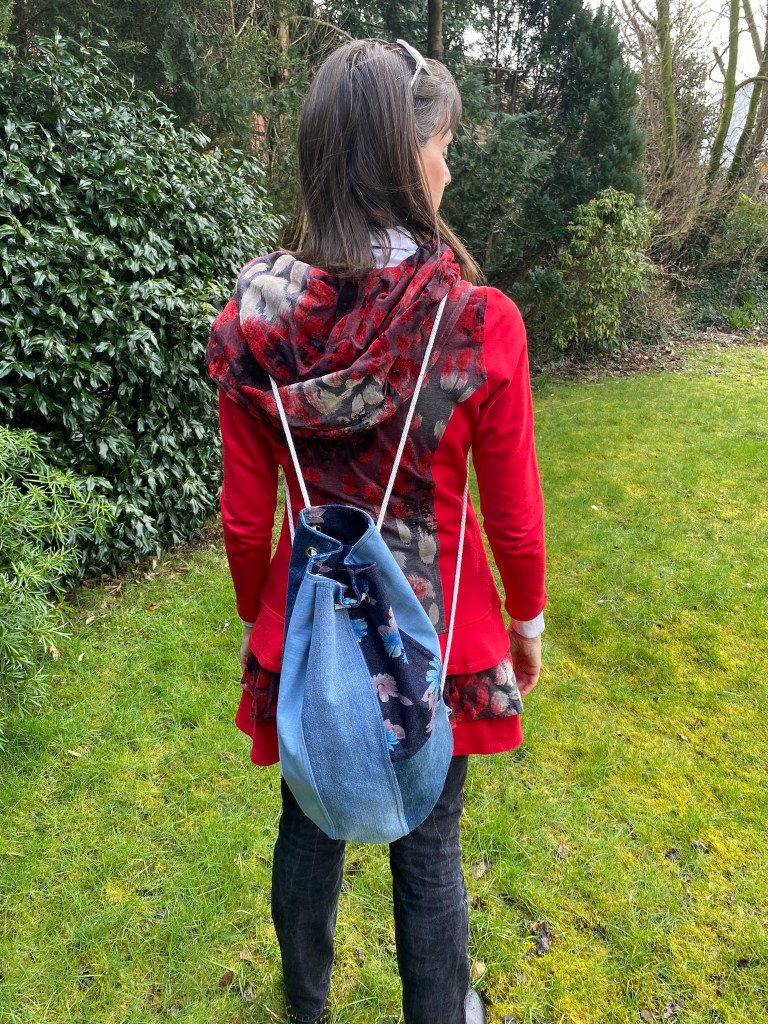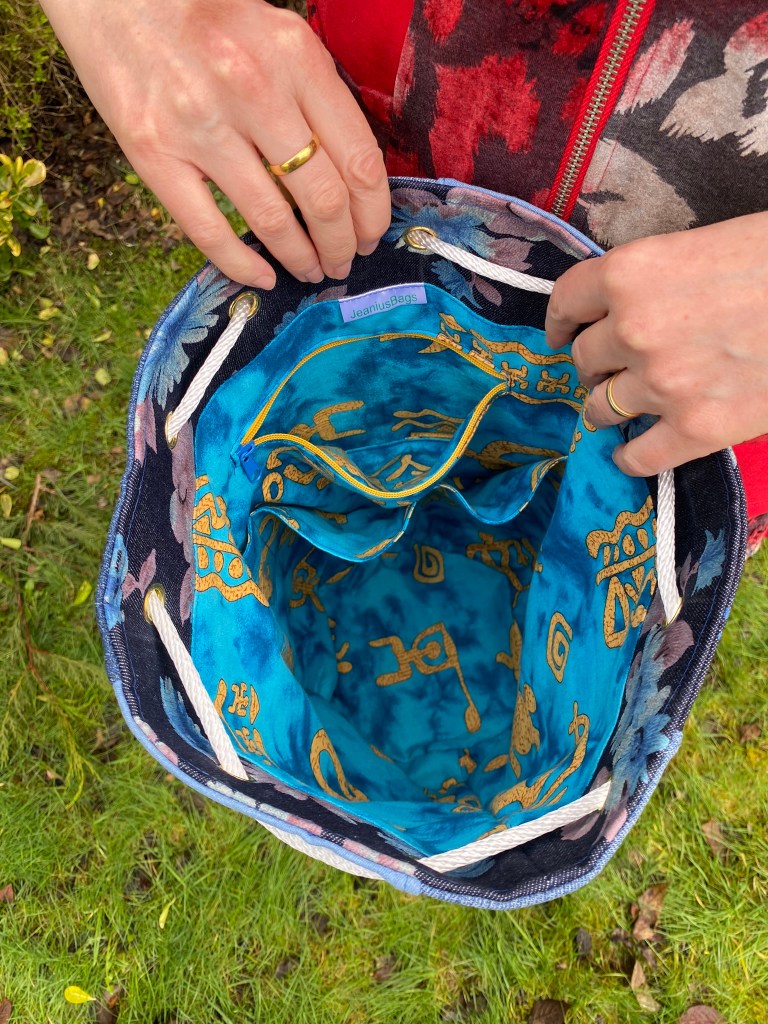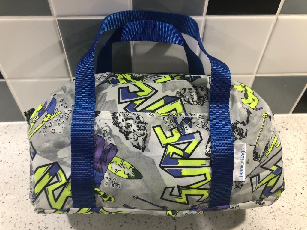 This spacious drawstring backpack was made specifically to meet the client’s need – tidy storage of her dryrobe in the boot of the car. This is made from ski-themed rip-stop water-resistant nylon. £10 plus P&P: