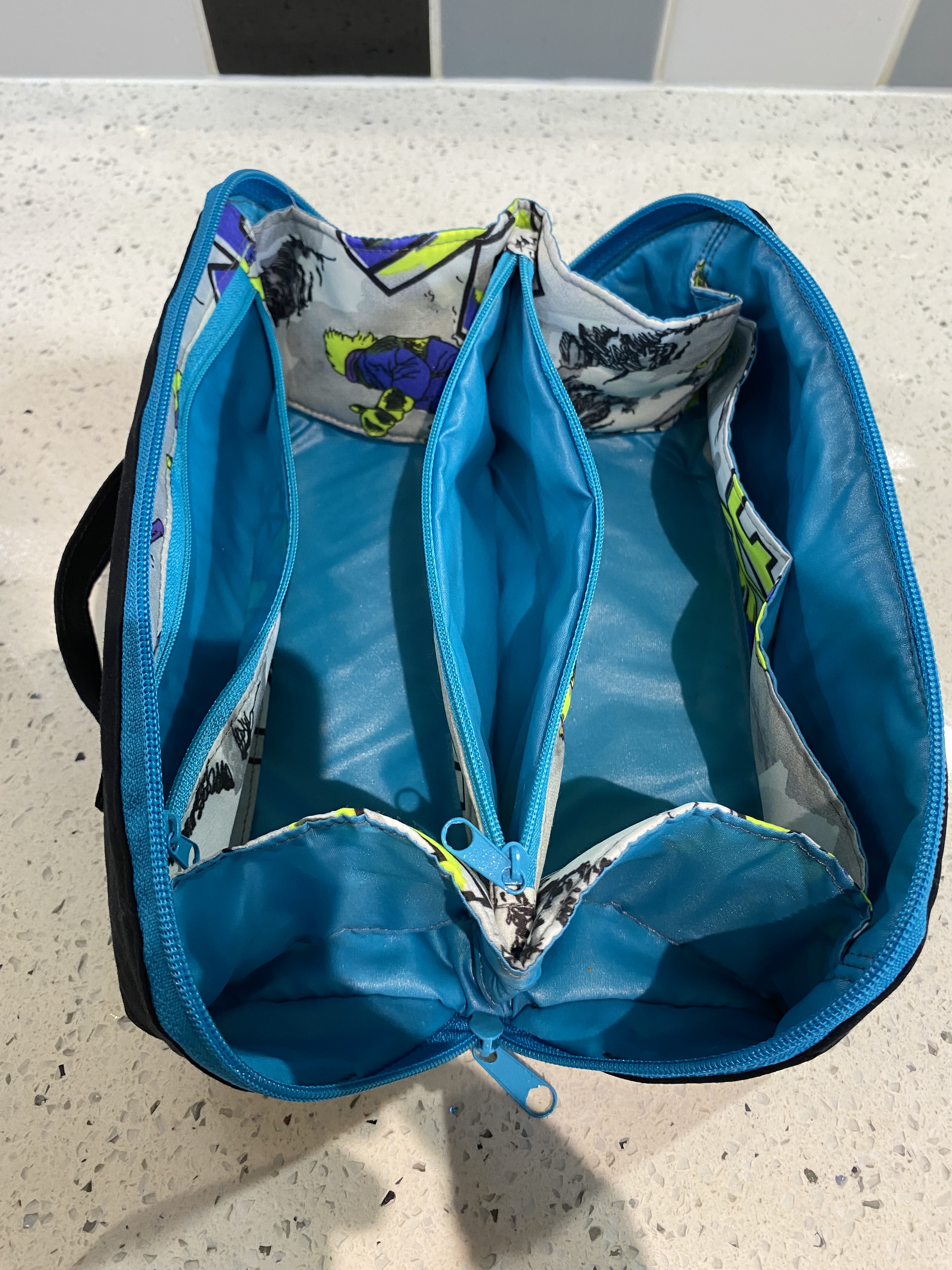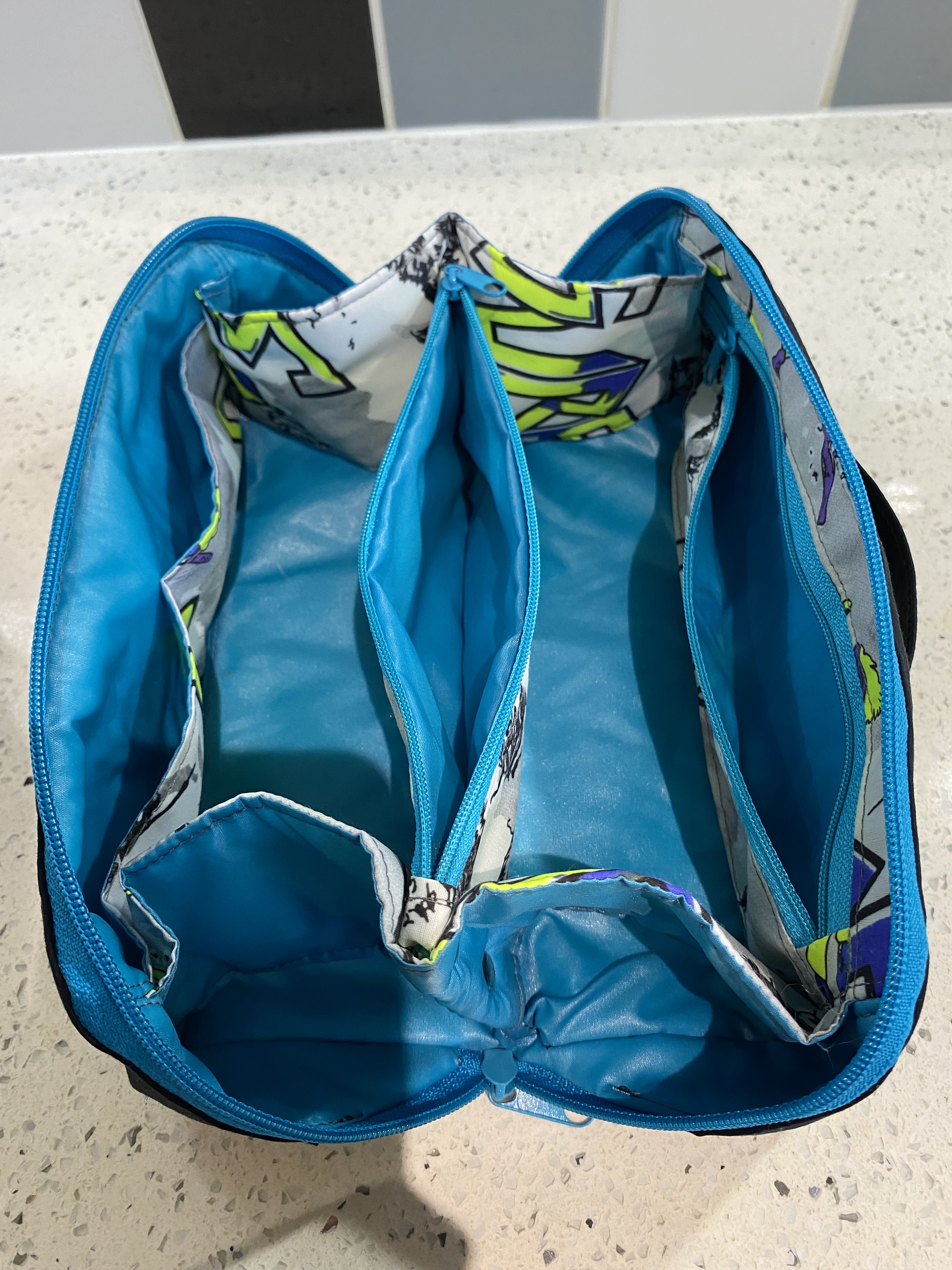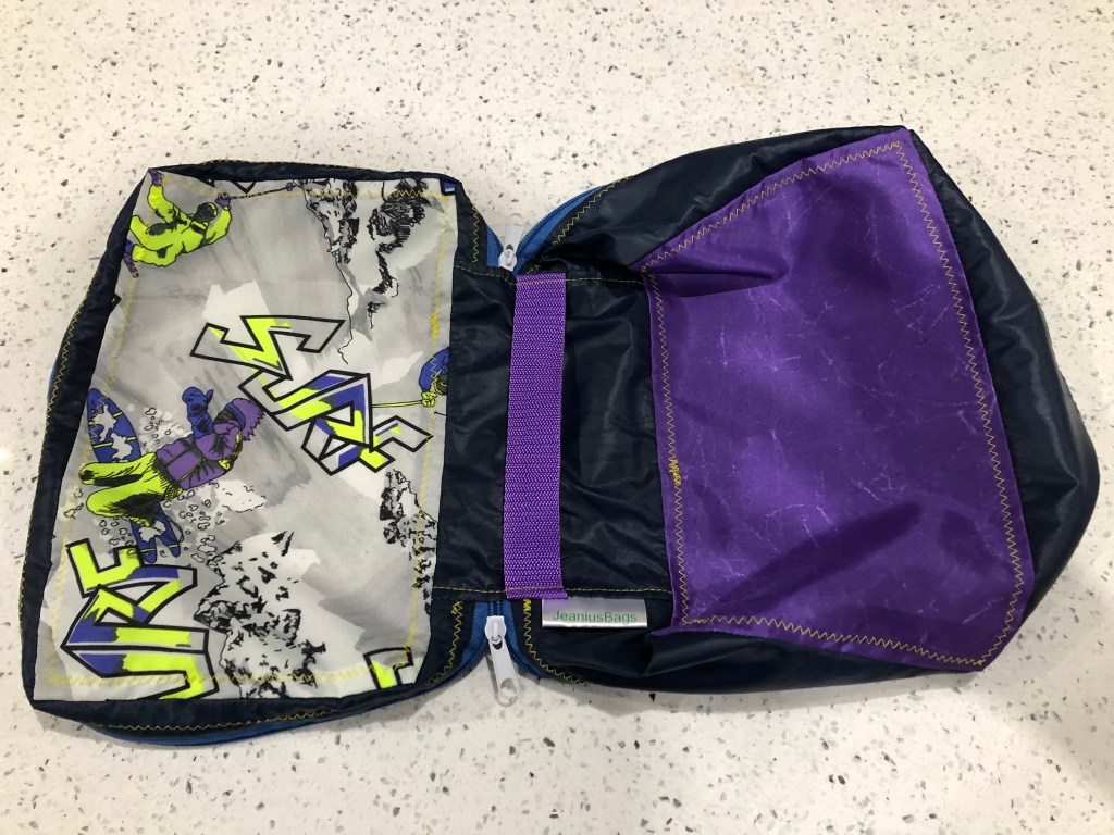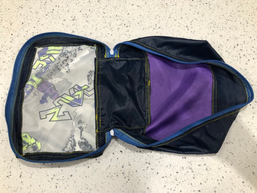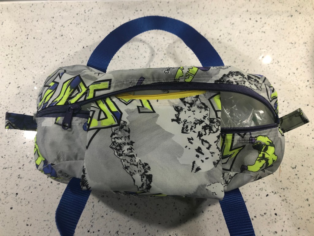 This spacious drawstring backpack was made specifically to meet the client’s need – tidy storage of her dryrobe in the boot of the car. This is made from ski-themed rip-stop water-resistant nylon. £10 plus P&P: