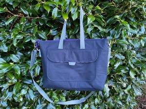 The Tip Top Tote is a casually stylish work bag large enough for a 15″ laptop or tablet along with your water bottle, kindle, purse/wallet, and countless other essentials. Outside there’s a large flap pocket on the front and two slip pockets on the back. Inside there’s a large compartment for a laptop or tablet, a water bottle sleeve, a zipped pocket, and three slip pockets.